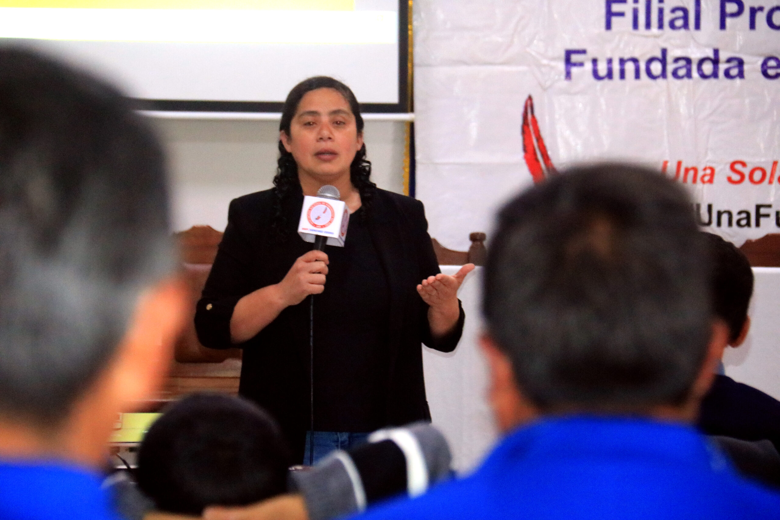 Seguido, la presidenta nacional, compañera Zuliana Lainez, saludó la gestión de la filial, destacó que el esfuerzo de las bases construye el hacer gremial y concluyó haciendo memoria de los compañeros Juan Vizcarra y René Peñaloza, anepistas moqueguanos que destacaron en vida por su identidad con el gremio.